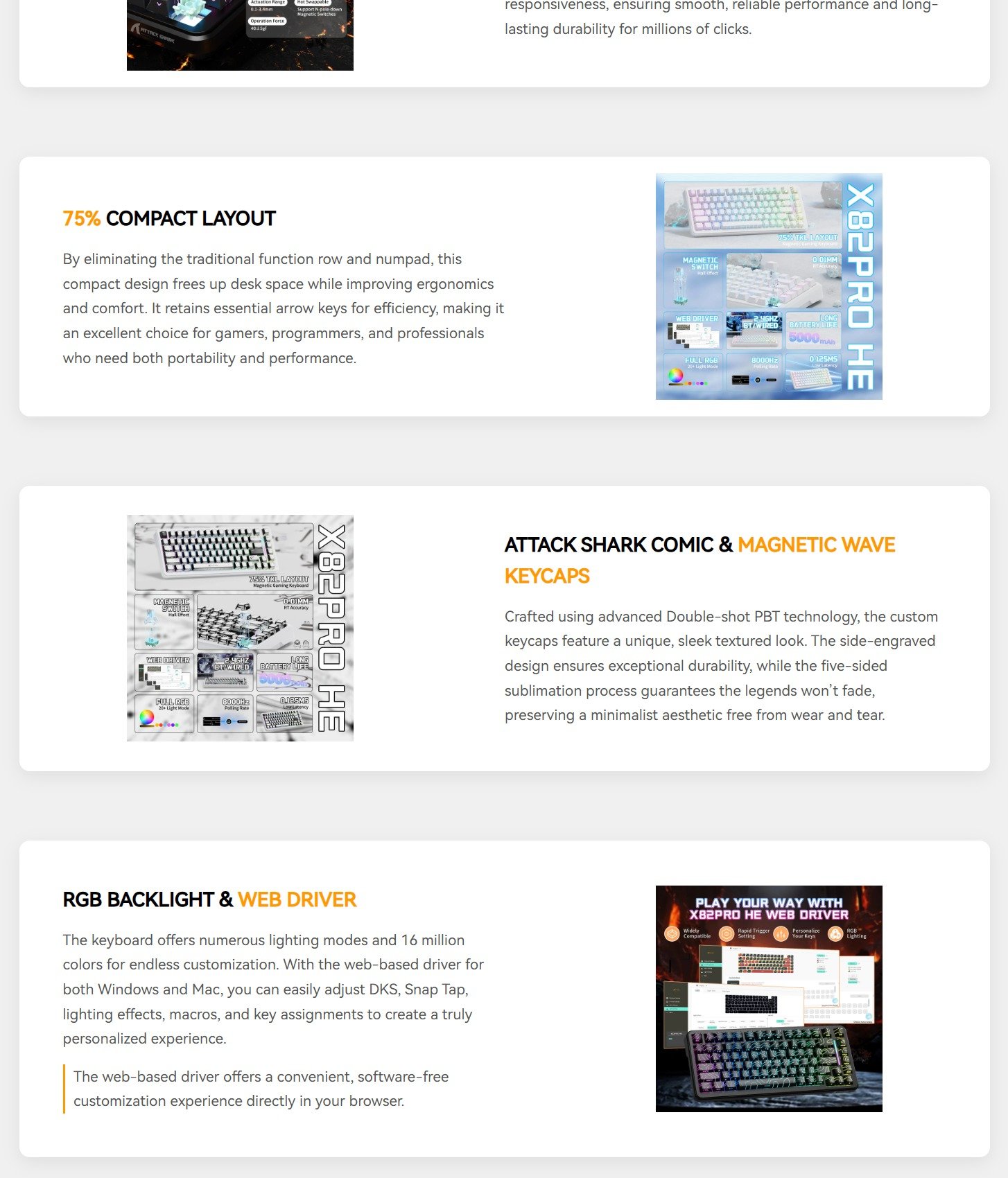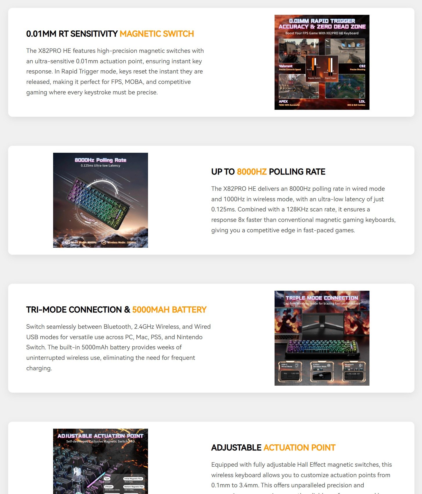Attack Shark X82PRO HE Tri-mode Rapid Trigger RGB Mechanical Gaming Keyboard – Comic White Features: