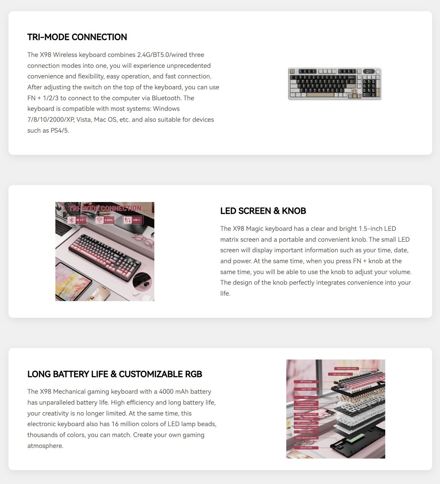 Attack Shark X98PRO Tri-mode Gasket Mechanical Gaming Keyboard – Cheese White Features