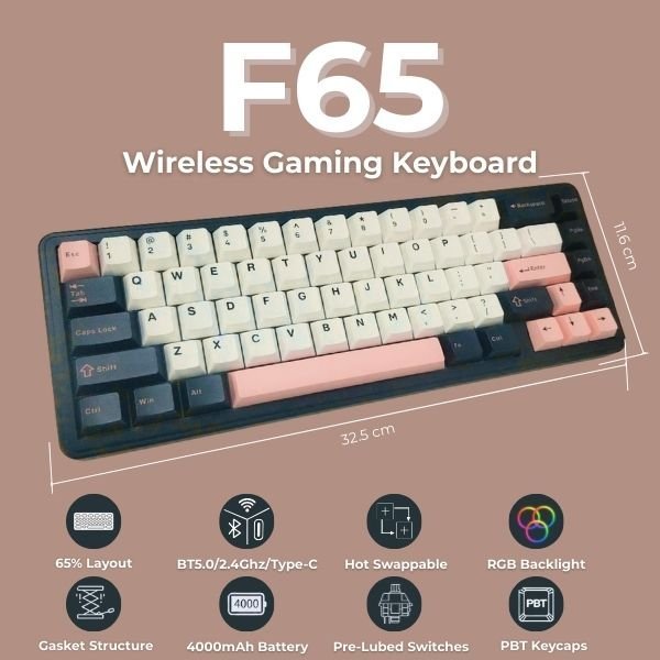 The detachable cable adds convenience for travel and cable management, keeping desks neat and organized. With its combination of sleek aesthetics, responsive switches, and ergonomic comfort, the Aula F65 White Pink Black is an excellent choice for gamers, professionals, and everyday users. It delivers a reliable and high-performing typing experience that meets modern demands.