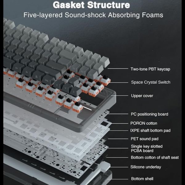 The F87 Pro features a gasket design, incorporating an extended silicone pad for a soft and delicate touch. This innovative structure ensures each keystroke is comfortable and satisfying, providing a unique elastic feel.