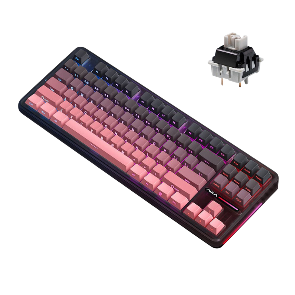 Equipped with responsive mechanical switches, the Aula F87 Pro Gradient Pink Black delivers precise keystrokes and consistent tactile feedback. Each key provides stability and control, making it perfect for fast-paced gaming, professional work, or long typing sessions. The compact layout saves desk space while keeping all essential keys within easy reach, helping users maintain an organized and efficient setup.