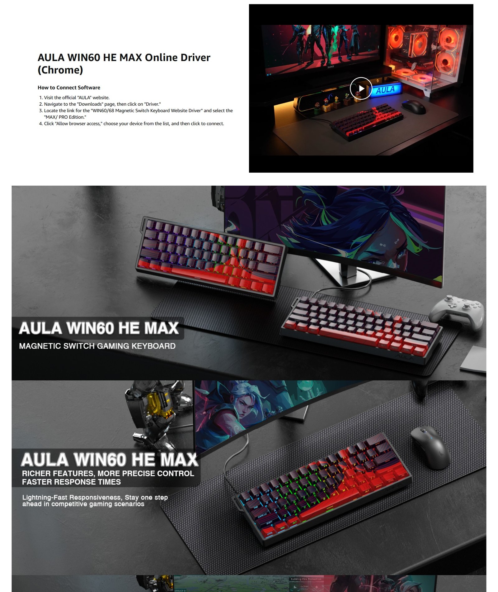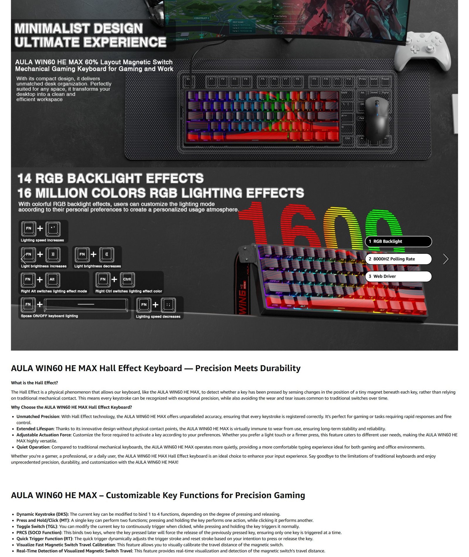Aula Win60 HE MAX Wired Magnetic Gaming Keyboard Features