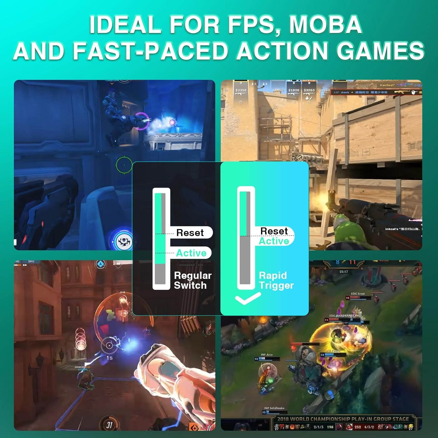 Specifically designed for FPS titles like Valorant and CS2, the Win60 HE MAX’s magnetic switches facilitate faster peeking and quick-stop shooting, significantly enhancing accuracy and positioning. Gain a competitive edge during high-stakes moments with this gaming keyboard