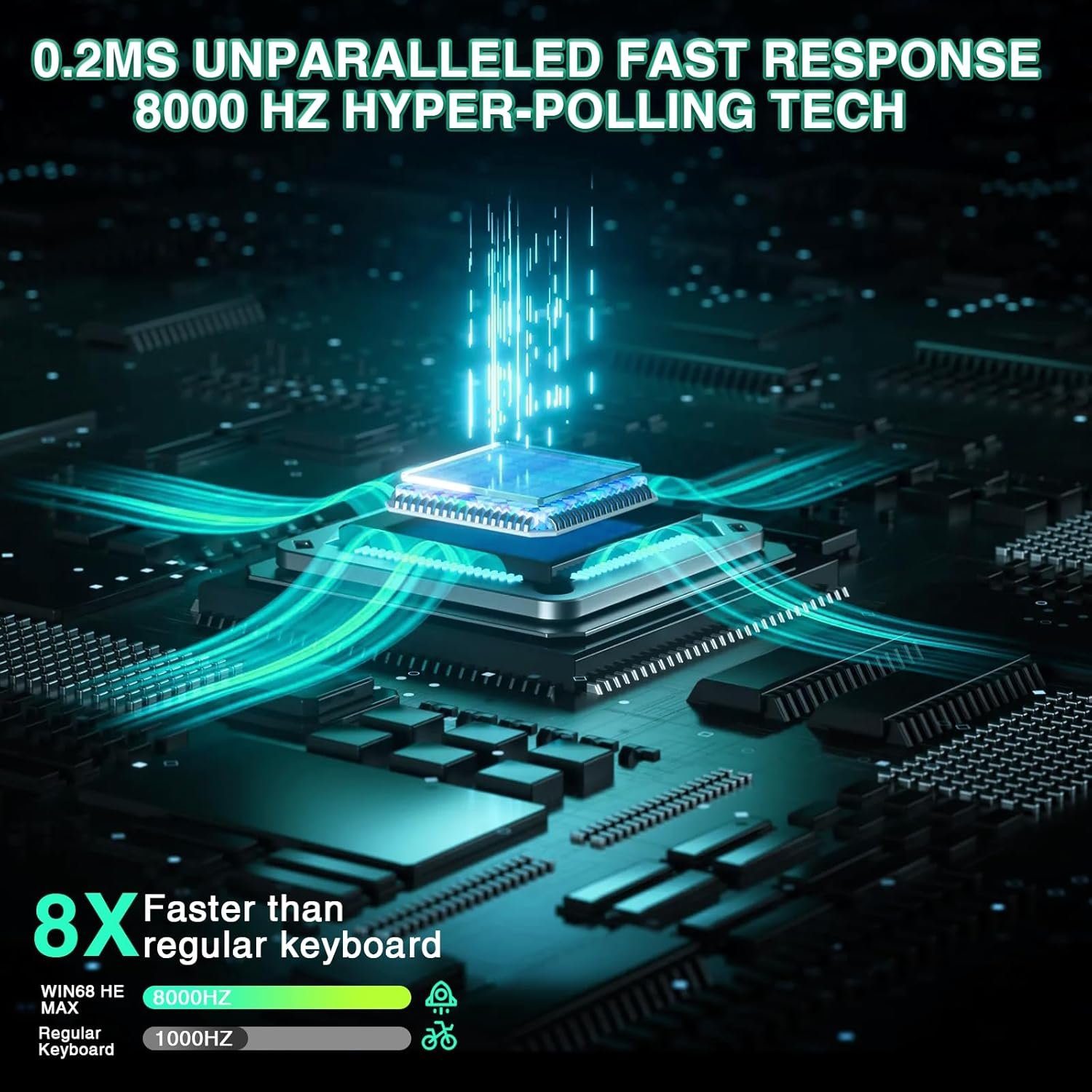 The AULA Win60 HE MAX Wing Chun Switch – 60% keyboard is equipped with advanced, self-developed magnetic switches and a lightweight, non-memory-consuming driver, delivering polling rates of up to 8000Hz for ultra-fast response times. Gain a competitive edge in gameplay with precise and reliable performance