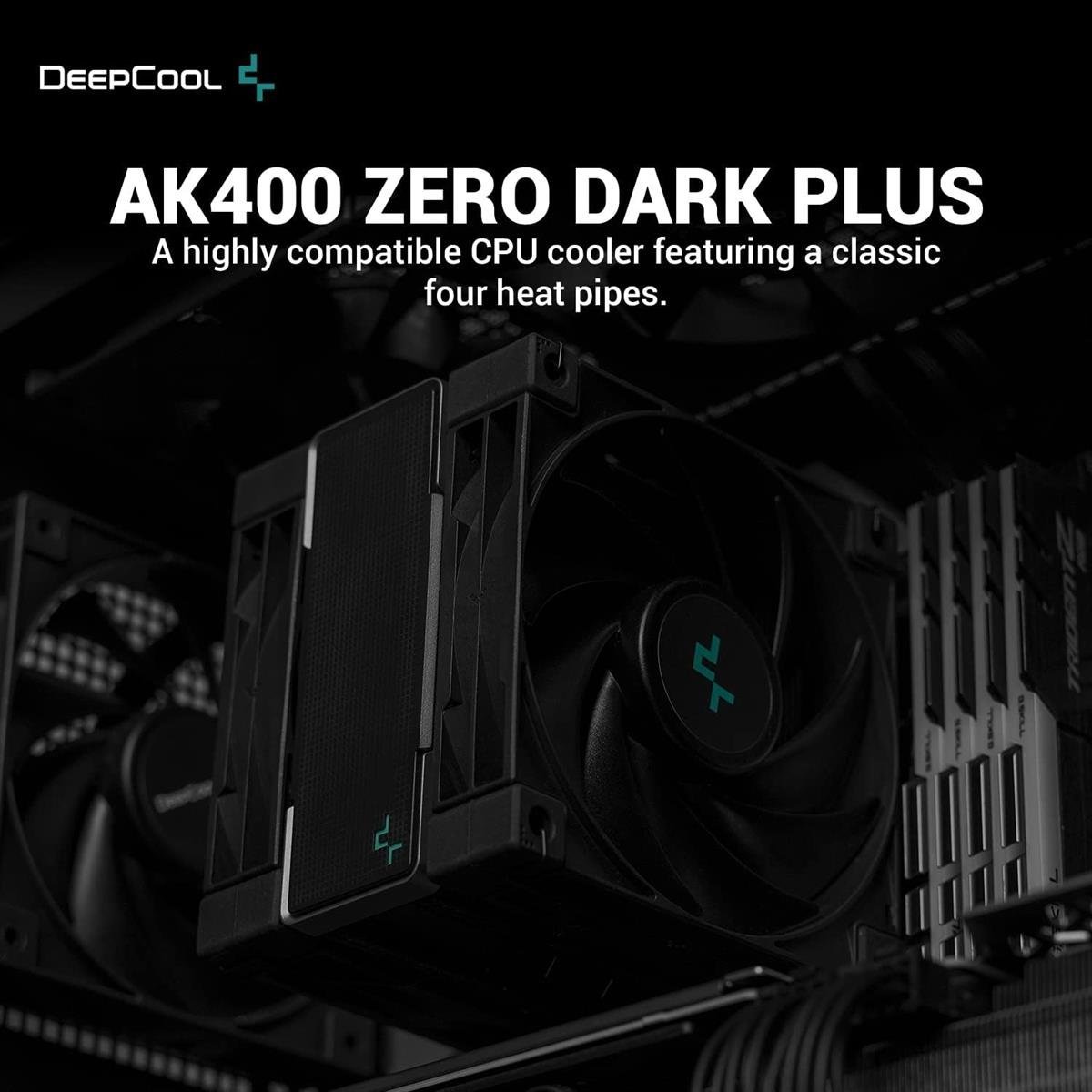 The DeepCool AK400 ZERO DARK PLUS is an all-black variant of our highly compatible AK400 CPU cooler featuring a classic four heat pipe tower layout with a unique matrix fin design and two high-performance FDB fans that delivers excellent heat dissipation and extremely low noise levels.