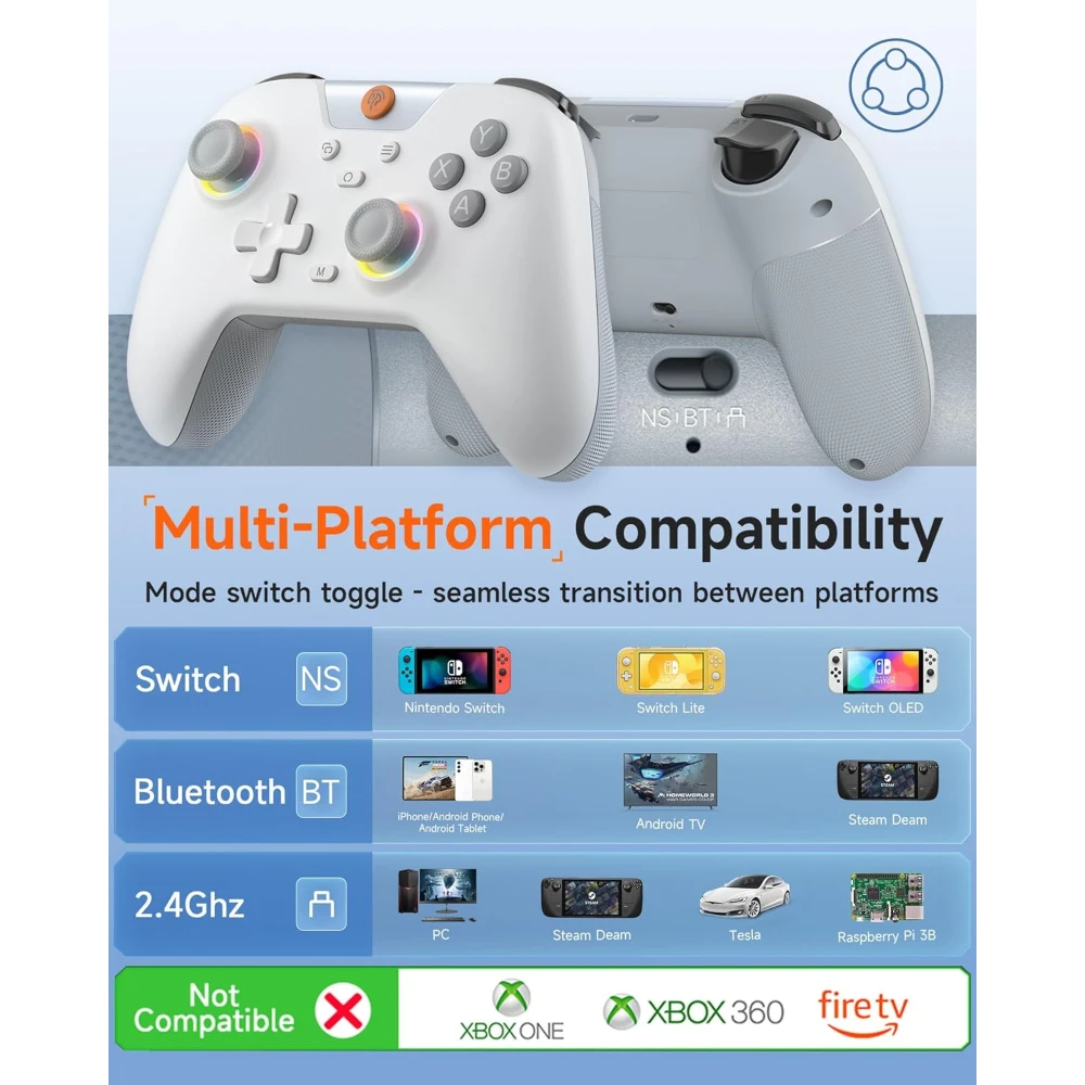 Enjoy up to 5 diverse lighting modes with various color combinations to match your style. The EasySMX X05 enhances gaming with fun and visually satisfying RGB effects.