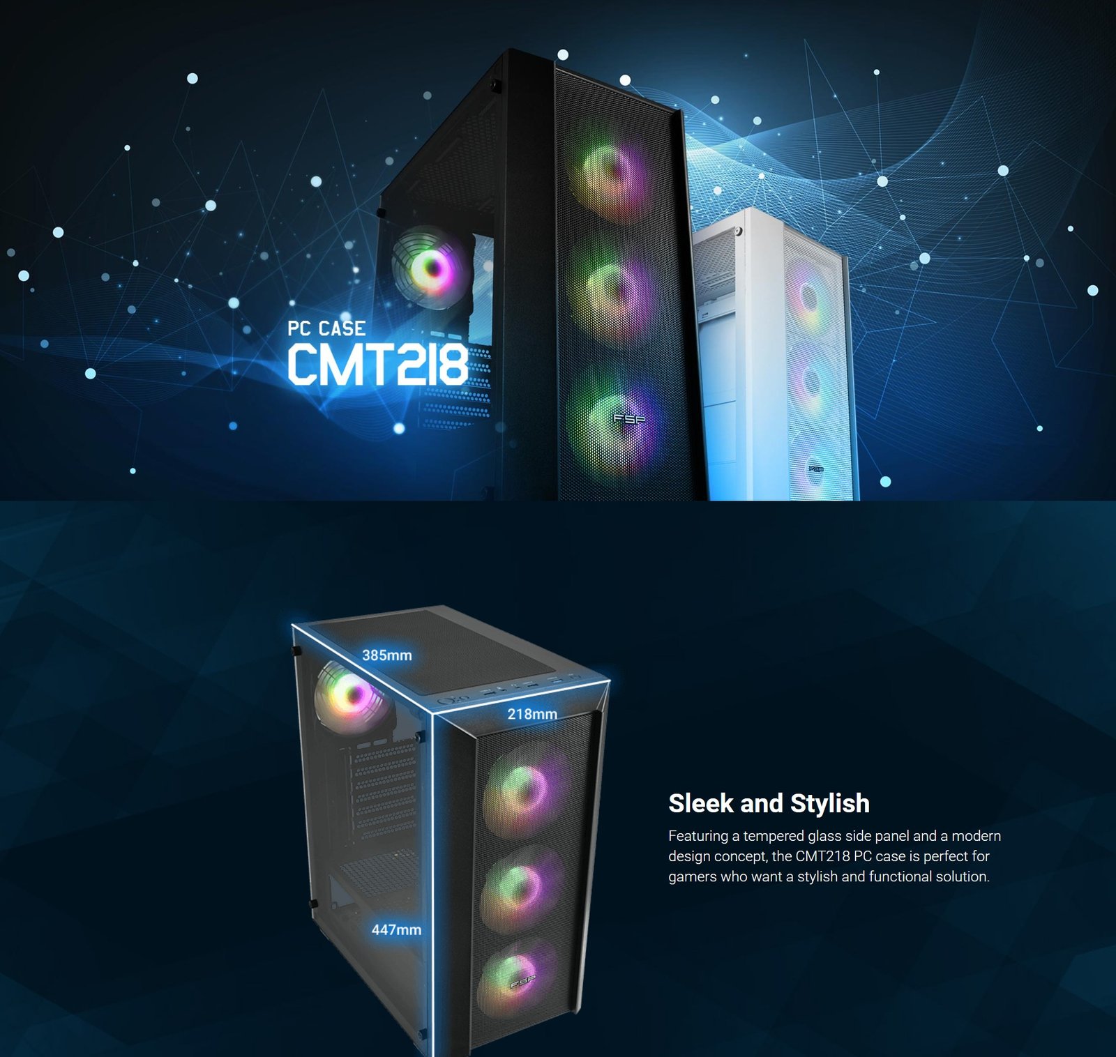 Featuring a tempered glass side panel and a modern design concept, the CMT218 PC case is perfect for gamers who want a stylish and functional solution.