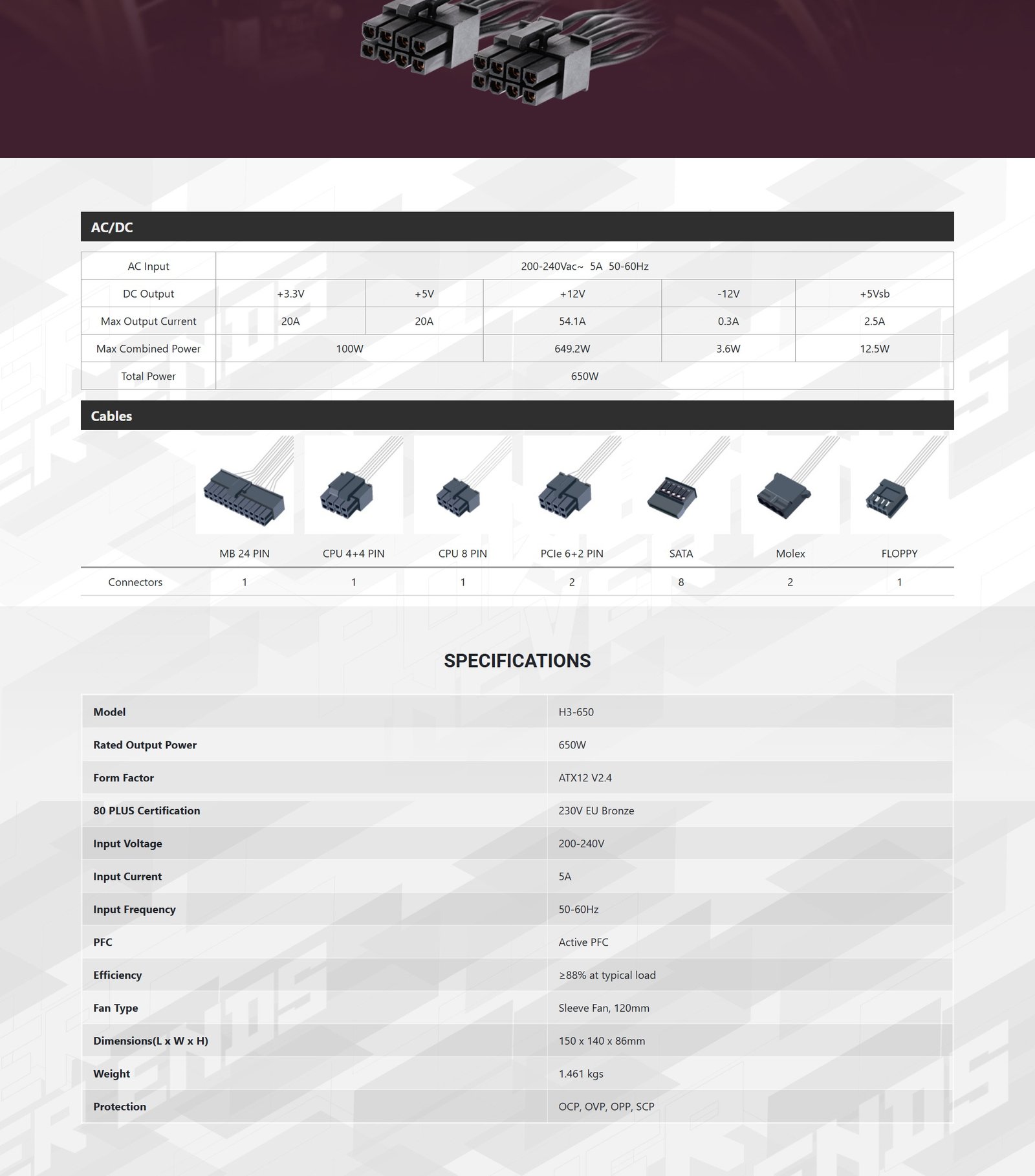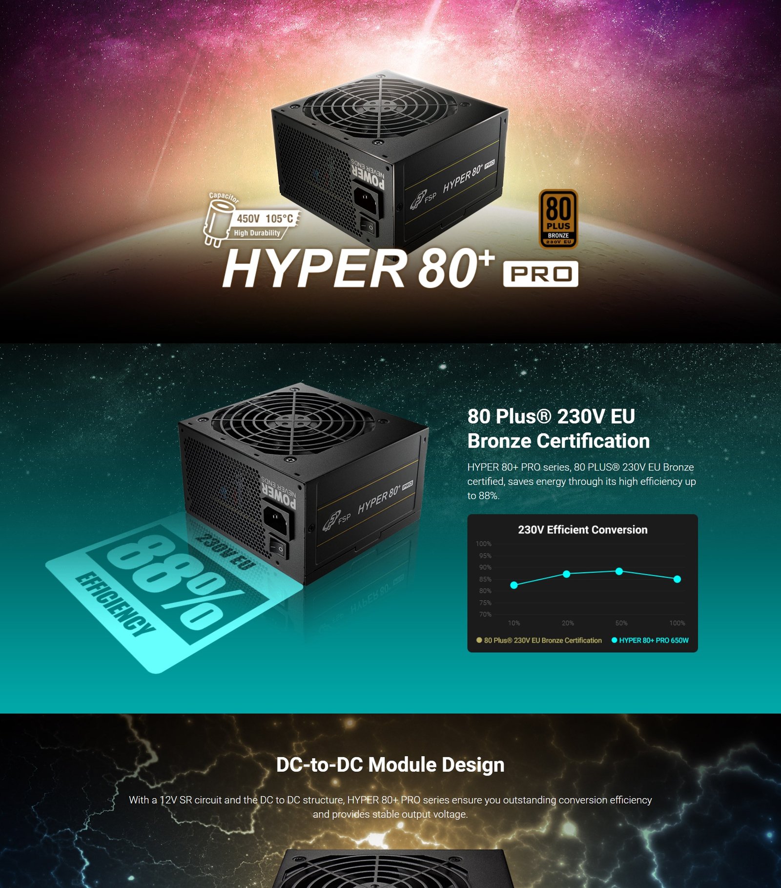 HYPER 80+ PRO series, 80 PLUS® 230V EU Bronze certified, saves energy through its high efficiency up to 88%.