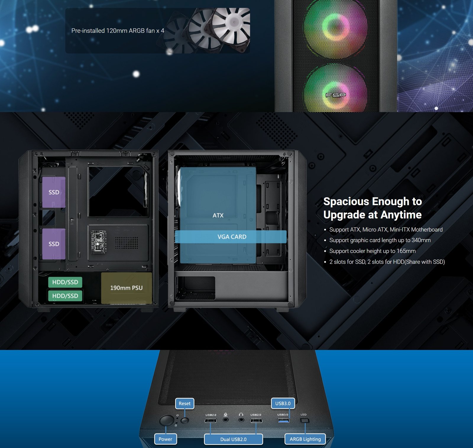 FSP CMT218 ARGB Gaming Chassis with Hyper 80+ Pro 650W Bronze PSU Combo Features