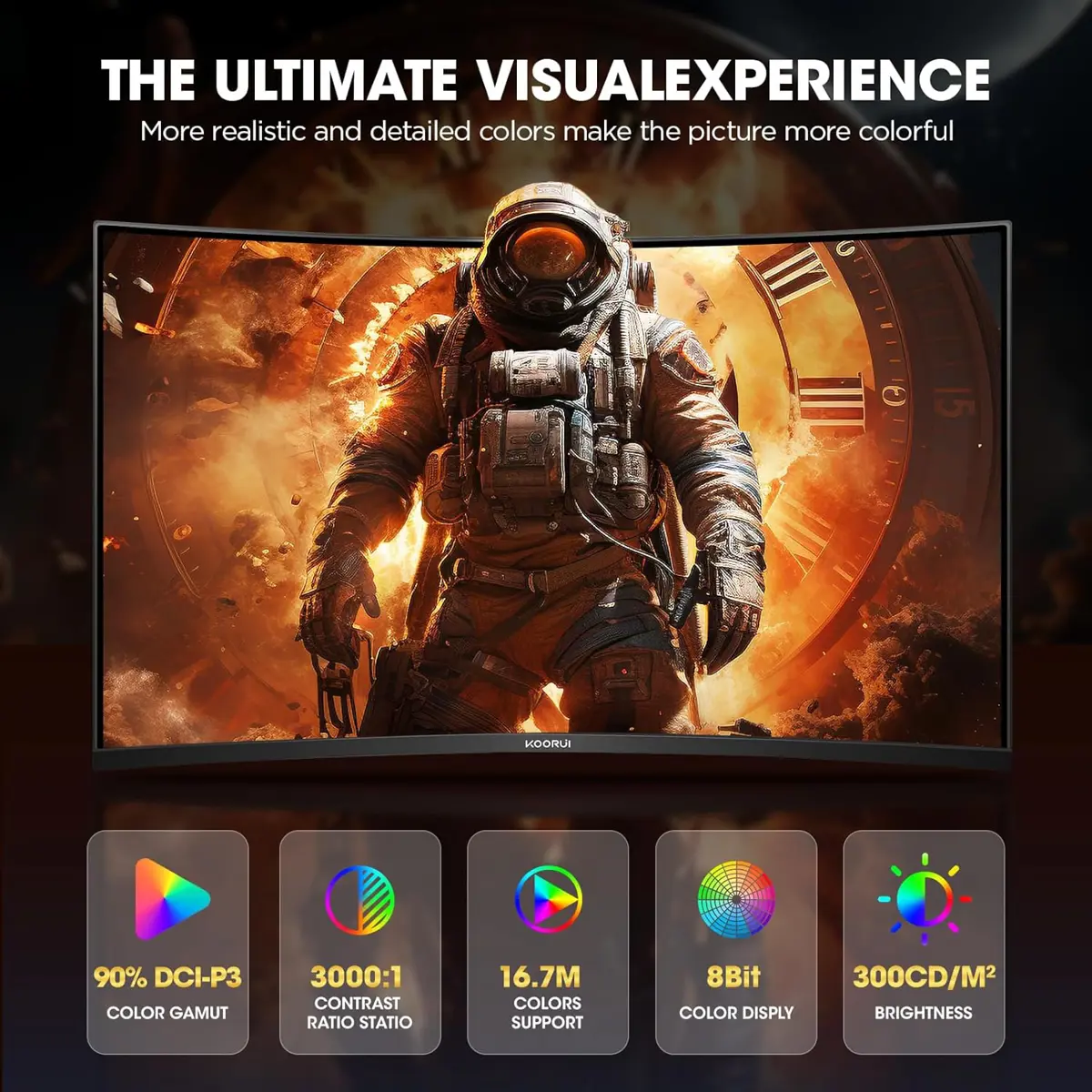 KOORUI 32 inch ultrawide curved gaming monitor (2560×1440 resolution) with a 1500R curvature design delivers a truly immersive experience. Whether you’re gaming intensely or enjoying your favorite movies, this monitor offers realistic visuals and comfortable viewing.