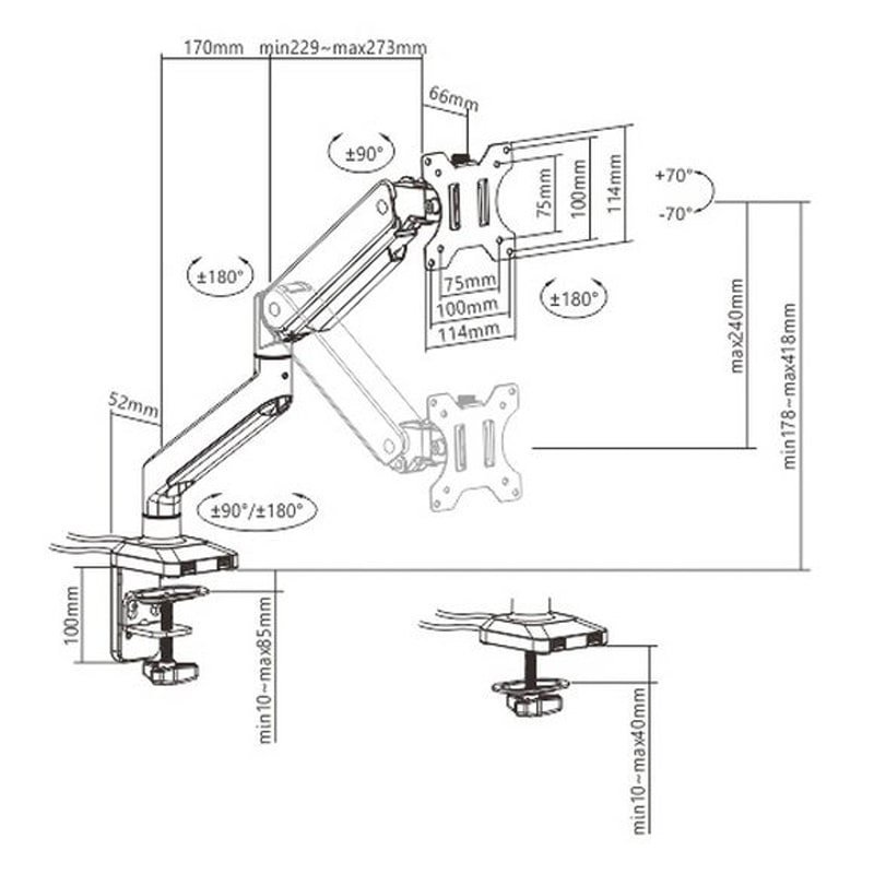 | Suggested Desktop Thickness: | Clamp:10~85mm Grommet:10~40mm (Clamp:0.39″~3.3″ Grommet:0.39″~1.6″) |