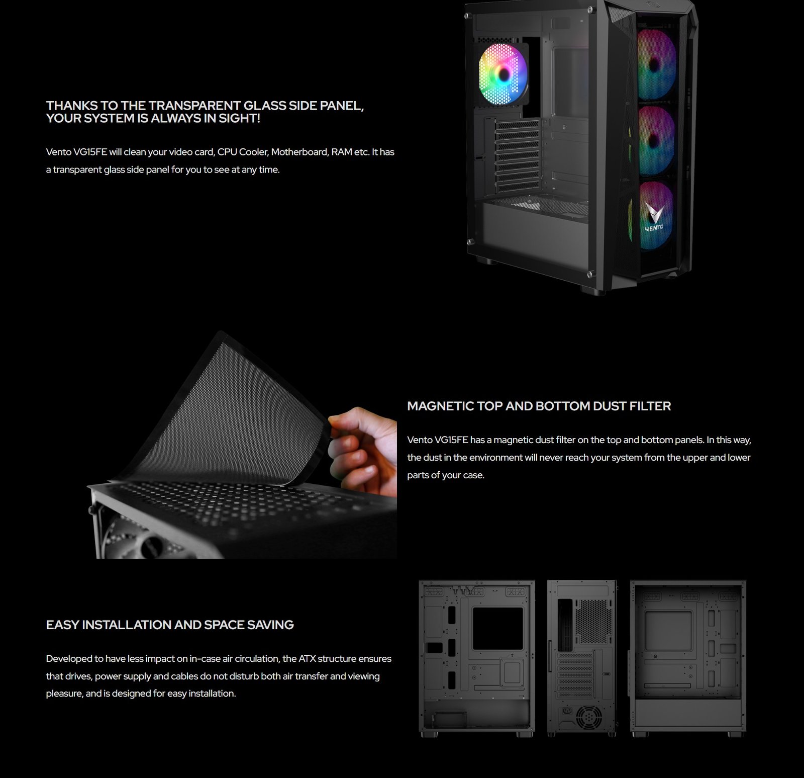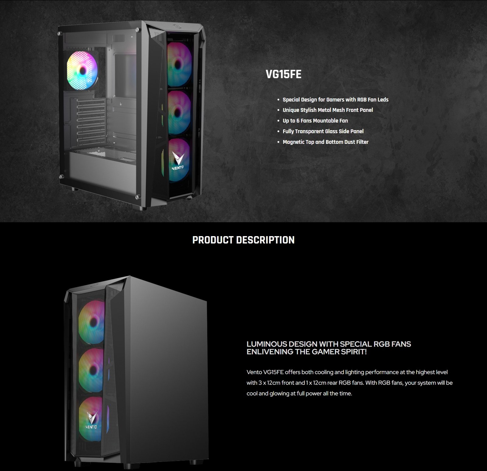 Vento VG15FE RGB Gaming Chassis with 550W Bronze PSU Combo Features