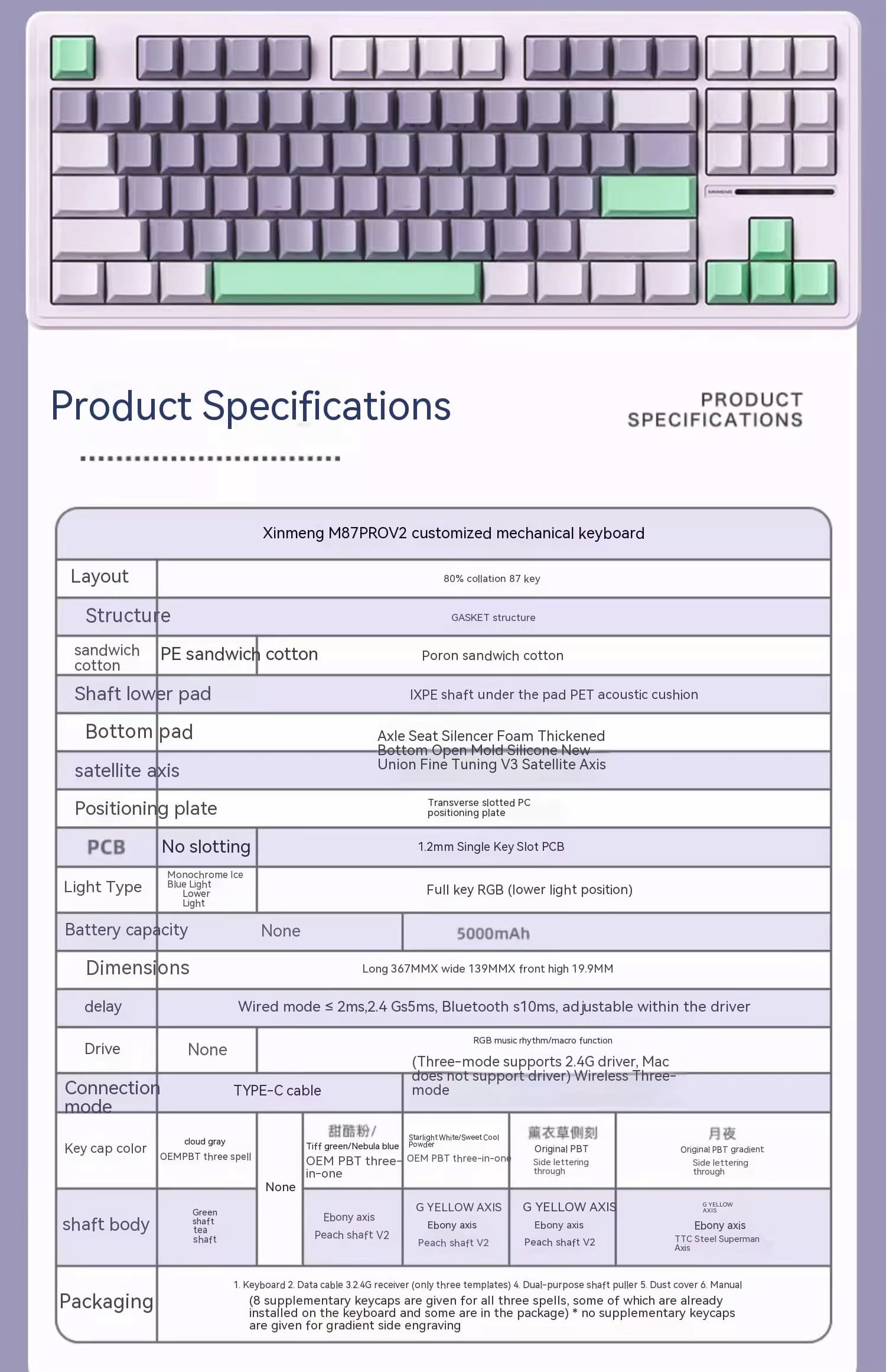 SAMA XINMENG M87 Pro V2 Tri-Mode Gasket Mechanical Keyboard Features